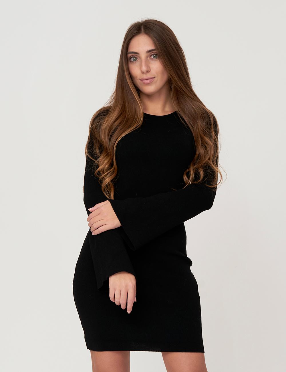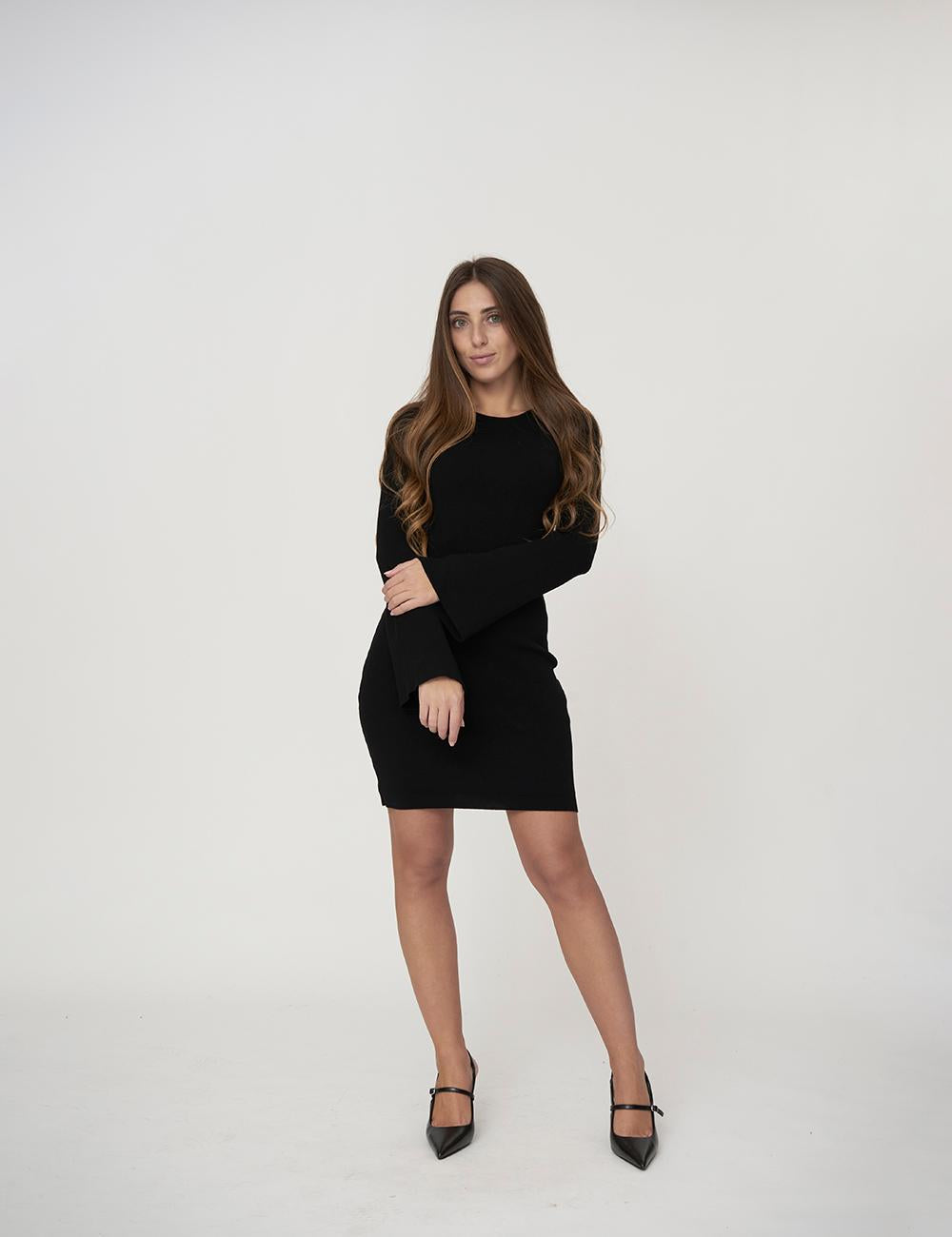 Abito corto a girocollo in maglia a manica lunga leggermente svasata sul fondo