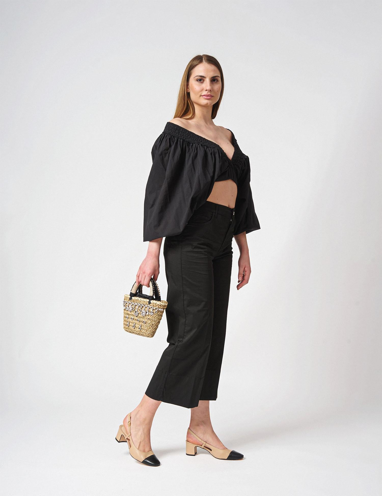 Jeans palazzo a caviglia in cotone elasticizzato