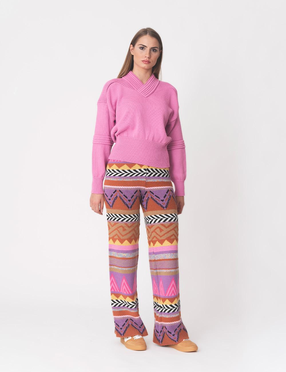 Pantalone a palazzo a fantasia jacquard
